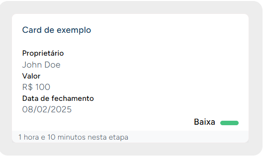 O rótulo/nome da propriedade **podem ou não serem exibidos** nas informações do card conforme a configuração do **"Estilo do card"**