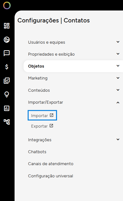 Selecione o objeto que deseja realizar a importação -> Próximo