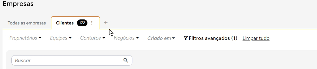 Esses filtros vão além das capacidades básicas de filtragem e permitem a combinação de vários critérios de filtragem para refinar os resultados. **Por exemplo, você pode filtrar empresas por nome, e proprietários simultaneamente.**