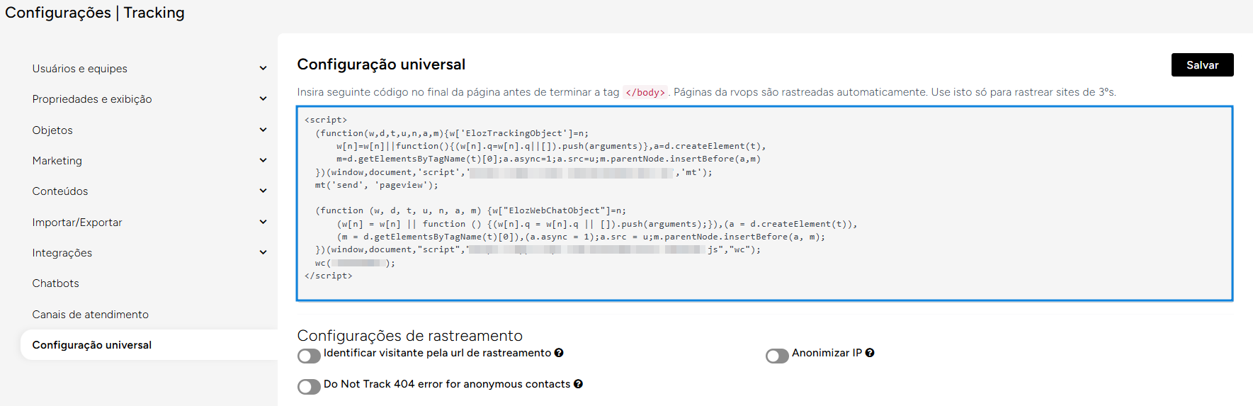 Nas configurações do CRM acesse -> **Configuração Universal**&#x20;