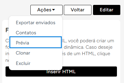 Você pode obter rapidamente o script de HTML do formulário clicando no botão **"Inserir HTML"**